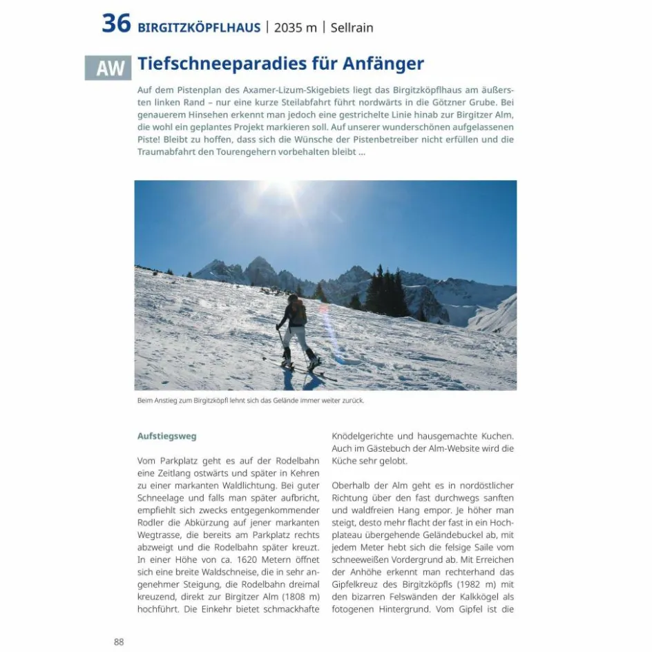 Das Buch dient vor allem dem Einsteiger und Genießer, der sich hinsichtlich der Ausrüstung und objektiven Gefahren an das Erlebnis Skitour annähern will, als perfekter Wegweiser. Die 24 Pistentouren sind in der Regel auch bei etwaigem Schneemangel oder bei ungünstigen Lawinenverhältnissen durchführbar. Zahlreiche Hütten im Pistengelände bieten mit längeren Öffnungszeiten an bestimmten Abenden beste Rahmenbedingungen für die stimmungsvolle Feierabendtour: Das in Mode gekommene After Work nutzen auch sportlich ambitionierte Tourengeher zur Steigerung ihrer Fitness.