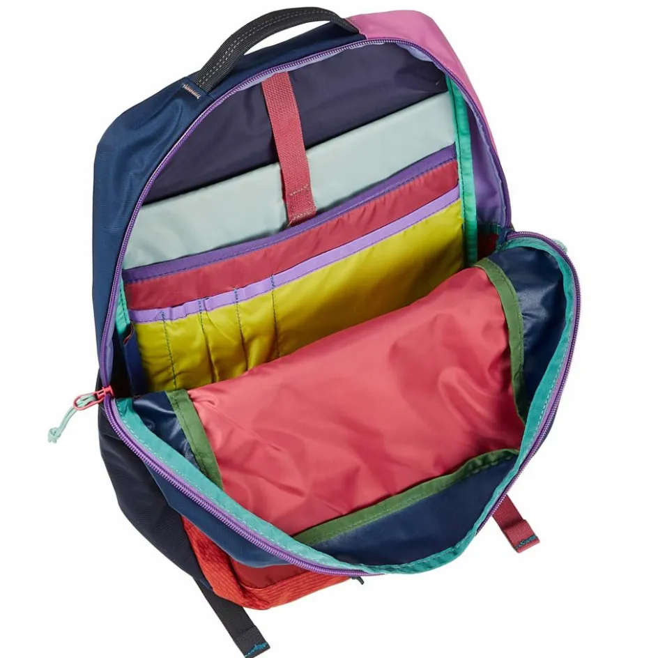 Jedes Produkt der Del Dia Serie ist ein Unikat! Du kannst die Farbauswahl nicht beeinflussen, sondern erhältst ein besonderes Produkt, das sonst keine:r hat. Die Cotopaxi Näher:innen auf den Philippinen haben die volle kreative Freiheit über die Farbzusammenstellung jedes Rucksacks und jeder Tasche. Dabei nutzen sie Stoffreste von anderen Rucksäcken. Das Ergebnis ist ein fröhliches, witziges und sehr persönliches Produkt. Der Schnitt und die Ausstattung sind natürlich bei allen gleich.