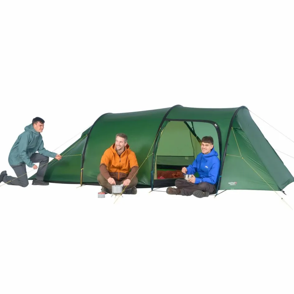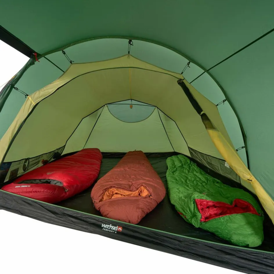 Großes Platzangebot und richtig leicht. Das Tempest 4 richtet sich an aktive Familien und bietet durch das schräg geschnittene Innenzelt auch Personen über 2m Größe einen Schlafplatz.