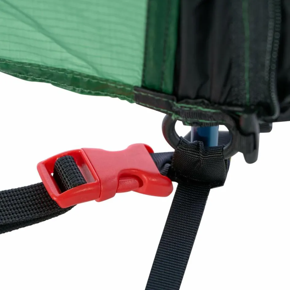Möchtest du noch minimalistischer unterwegs sein, kannst du das Innenzelt ausknöpfen und nur mit dem Überzelt als Regenschutz auf Reisen gehen.