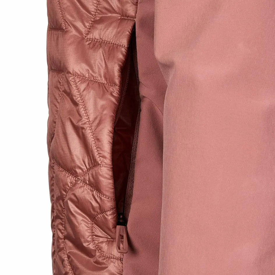 Als Hauptmaterial kommt ein robustes Stretch-Gewebe zum Einsatz. Das luftdurchlässige Material kann mit einem sehr guten Feuchtigkeitsmanagement aufwarten und trocknet nach schweißtreibenden Aktivitäten schnell wieder. Im Frontbereich und an den Schultern schützen wattierte Einsätze unter einem seidig-weichen Außenmaterial die besonders empfindlichen Körperstellen vor dem Auskühlen. So sorgt die Jacke für eine optimale Temperaturregulation beim Wandern und Trekking, aber auch beim Trailrunning und anderen dynamischen Outdoor-Aktivitäten.