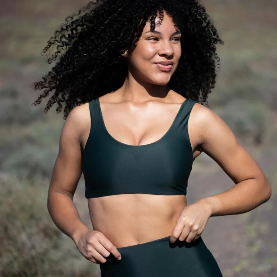 Das Bikini Top Pure Dark Green besticht beim Schwimmen, Stand-up-Paddling Yoga und Fitness mit kurzer Trocknungszeit, hohem Komfort, bequemer Passform und guter Abdeckung sowie wandelbarer Optik.