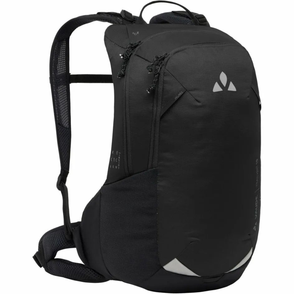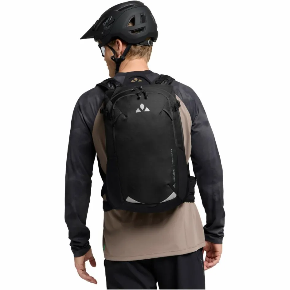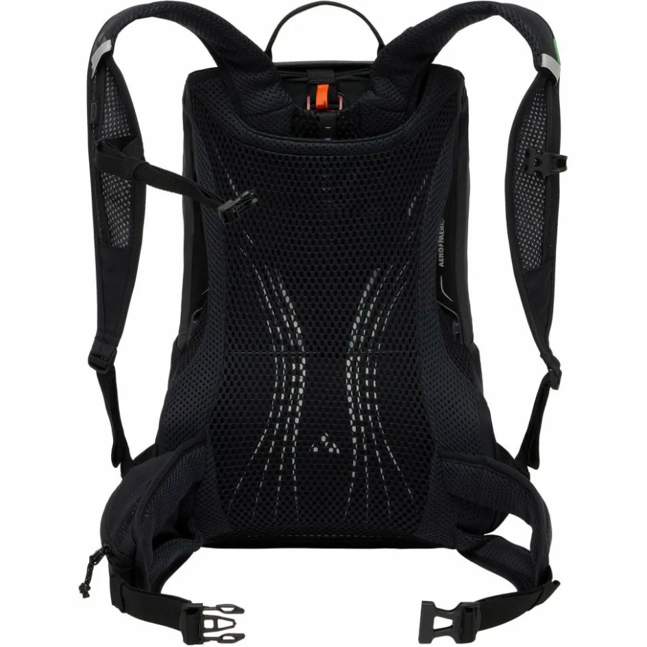 Das Aeroflex 3D Tragesystem sorgt für ausgezeichneten Tragekomfort und optimale Belüftung am Rücken. Die ergonomisch geformten, gut gepolsterten Träger lassen sich mit der Shifting Back Length nahtlos auf jede Rückenlänge anpassen. Der gepolsterte Hüftgurt hat auf der rechten Seite eine kleine Reißverschlusstasche. Der Brustgurt mit Schlauchhalter, eine Helmhalterung auf der Front, ein Blinklichthalter, eine im Bodenfach untergebrachte Regenhülle und große Reflexelemente komplettieren die Komfortausstattung des Fahrradrucksacks. Der Trailvent 10 Liter Fahrrad Rucksack ist mit Eco Finish PFC-frei wasserabweisend ausgerüstet.