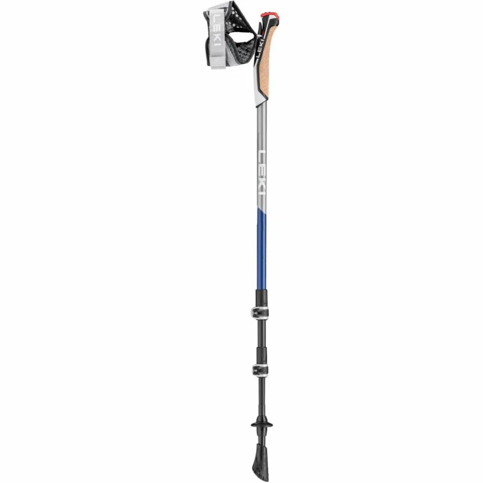 Die Traveller Carbon Stöcke von Leki weisen durch ihre Shark-Handschlaufen und Griffe ein hervorragendes Schwungverhalten auf und unterstützen dich somit beim Walken optimal. Die Shark-Handschlaufen werden über einen kleinen Ring in der Daumenbeuge direkt mit den Griffen verbunden. Per Knopfdruck kann die Schlaufe einfach und schnell vom Griff gelöst werden. Die ergonomisch geformten Schlaufen sind auch einem atmungsaktiven Mesh-Gewebe gemacht und werden per Klettverschluss geschlossen.