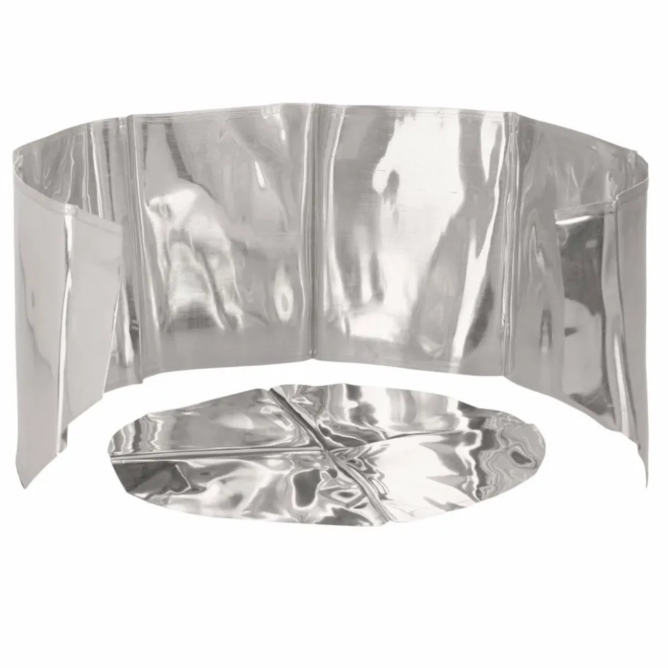 Das Wärmereflektorset besteht aus einem Reflektorring für den Kocher und den Windschutz.