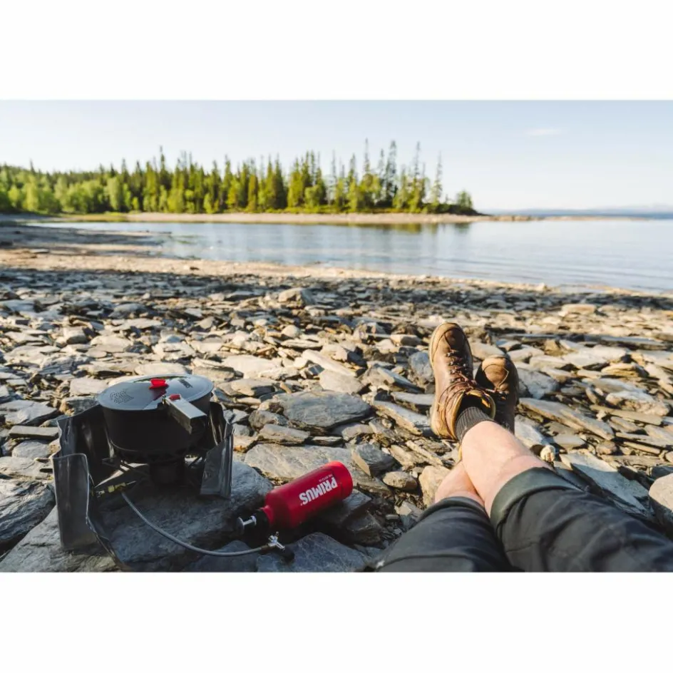 Damit wird dein Kocher noch leistungsfähiger. Der Windschutz aus Aluminium schützt die Flamme selbst bei Sturm und reflektiert die Hitze. Das verkürzt die Garzeit und den Brennstoffverbrauch.