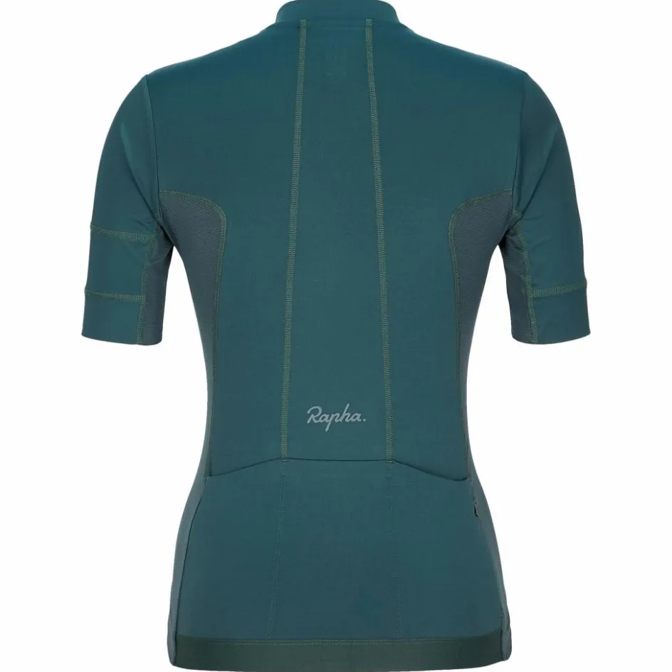 Das Women’s Rapha Jersey liefert dem Wind dank engem Schnitt und sehr hoher Elastizität keinerlei Angriffsfläche. Mit dem durchgehenden RV ist das An- und Ausziehen sowie das Lüften kein Problem. 3 Trikottaschen plus eine Reißverschlusstasche am Rücken bieten genug Stauraum. Der hintere Saum ist rutschhemmend silikonisiert und hält das Fahrradtrikot zuverlässig in Position.