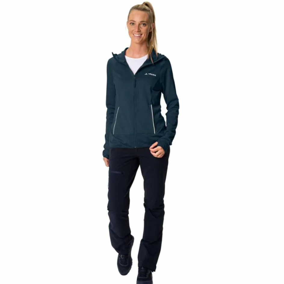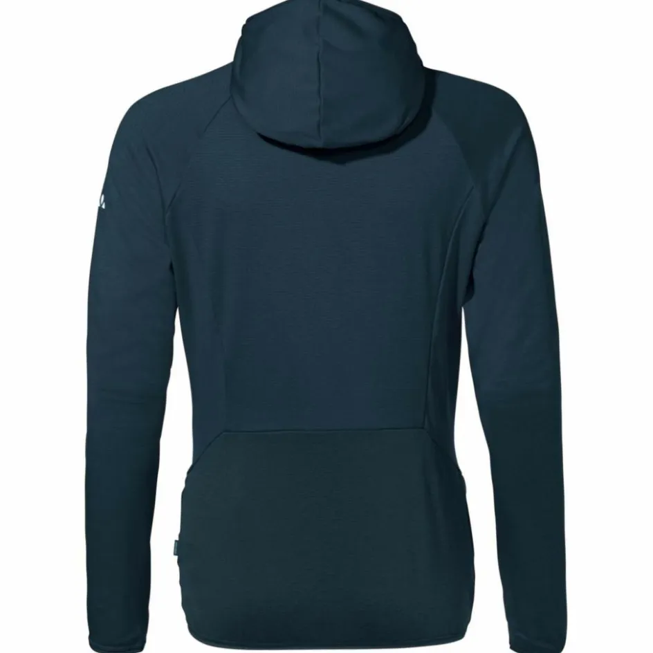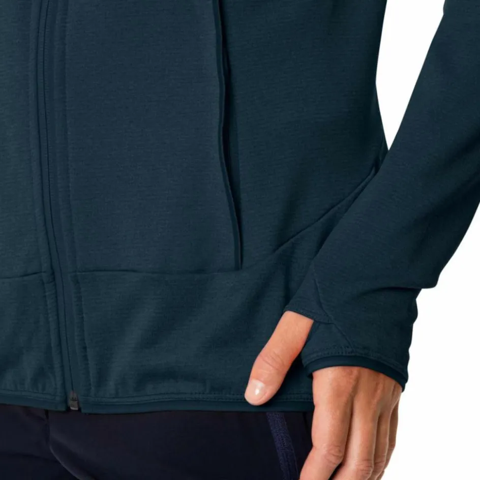Die leichte Rippstruktur auf der Innenseite sorgt für einen schnellen Abtransport von Körperfeuchtigkeit und bietet durch die zwischen den Rippen eingeschlossene Luft eine gute Wärmleistung. Durch den Schuss Elasthan im Gewebe ist die Jacke so elastisch, dass sie alle Bewegungen mitmacht. Der hohe Polyester-Anteil lässt die Fleecejacke schnell trocknen und macht sie besonders nachhaltig, denn ein Großteil des verwendeten Polyesters ist recycelt.