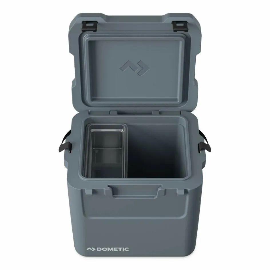 Die 28-Liter-Kühlbox CI 28 von Dometic ist die ideale Begleiterin für dein nächstes Outdoor-Abenteuer. Dank hervorragender Isolierung bleiben Eis und Kühlakkus mehrere Tage lang gefroren. Das rotationsgeformte Gehäuse ist nahezu unverwüstlich und überzeugt durch robuste Tragegriffe, einhändig zu öffnende Gummiverschlüsse sowie einen Steckplatz zur Befestigung deines Lieblings-CI-Zubehörs. Sogar eine aufrecht stehende Flasche Champagner findet hier problemlos Platz.