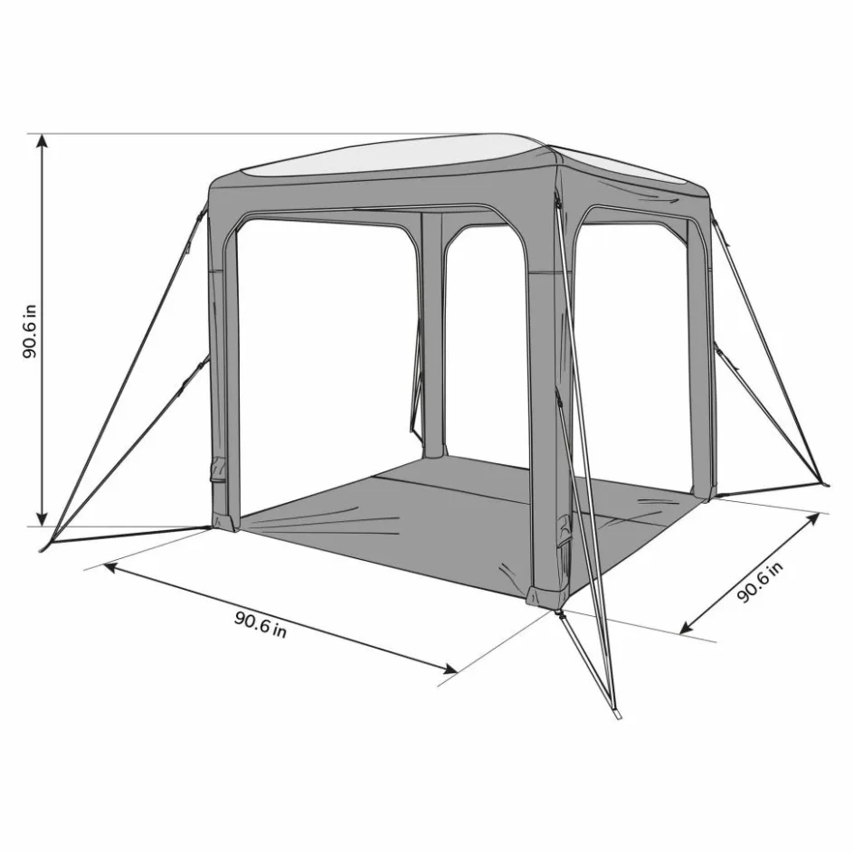 Shelter, Bodenplane, 4 Quickpitch-Abspannriemen, 2,2-Liter-Pumpe, Hering-Set, Bedienungsanleitung, Tragetasche