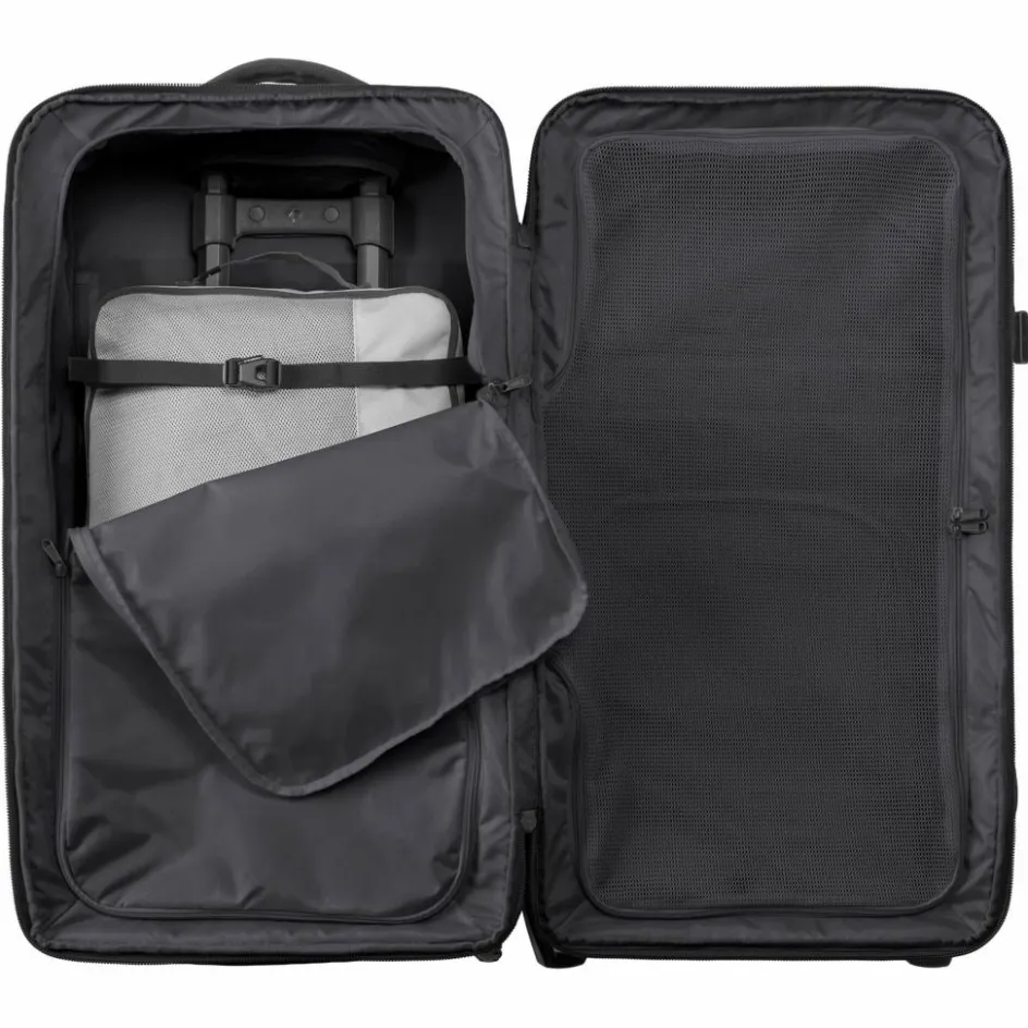 Stiefel, Helm, Bekleidung – für alles ist in der Reisetasche mit Rollen Platz. Dank der Abtrennungen sowie den Kompressionsriemen innen und außen kannst du dein Gepäck übersichtlich und fest unterbringen. Brauchst du die RV-Abtrennungen nicht, kannst du sie einfach verstauen. Ebenfalls praktisch ist das Cargo-Netz, mit dem sich zusätzlich Ausrüstung in oder am Rollkoffer fixieren lässt.