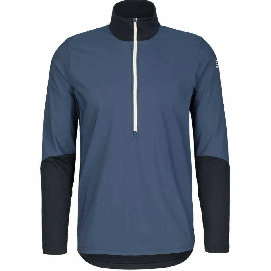 Die Vorderseite, Schulterpartien und oberen Ärmel bestehen aus einem feuchtigkeitsleitenden, strapazierfähigen und dehnbaren Mix aus Merinowolle, Polyamid und Elasthan. Der Materialmix verfügt über eine kurze Trocknungszeit, reguliert die Körpertemperatur und ist windabweisend. So genießt du uneingeschränkte Bewegungsfreiheit und bist bei windigem und kühlem Wetter optimal aufgehoben.