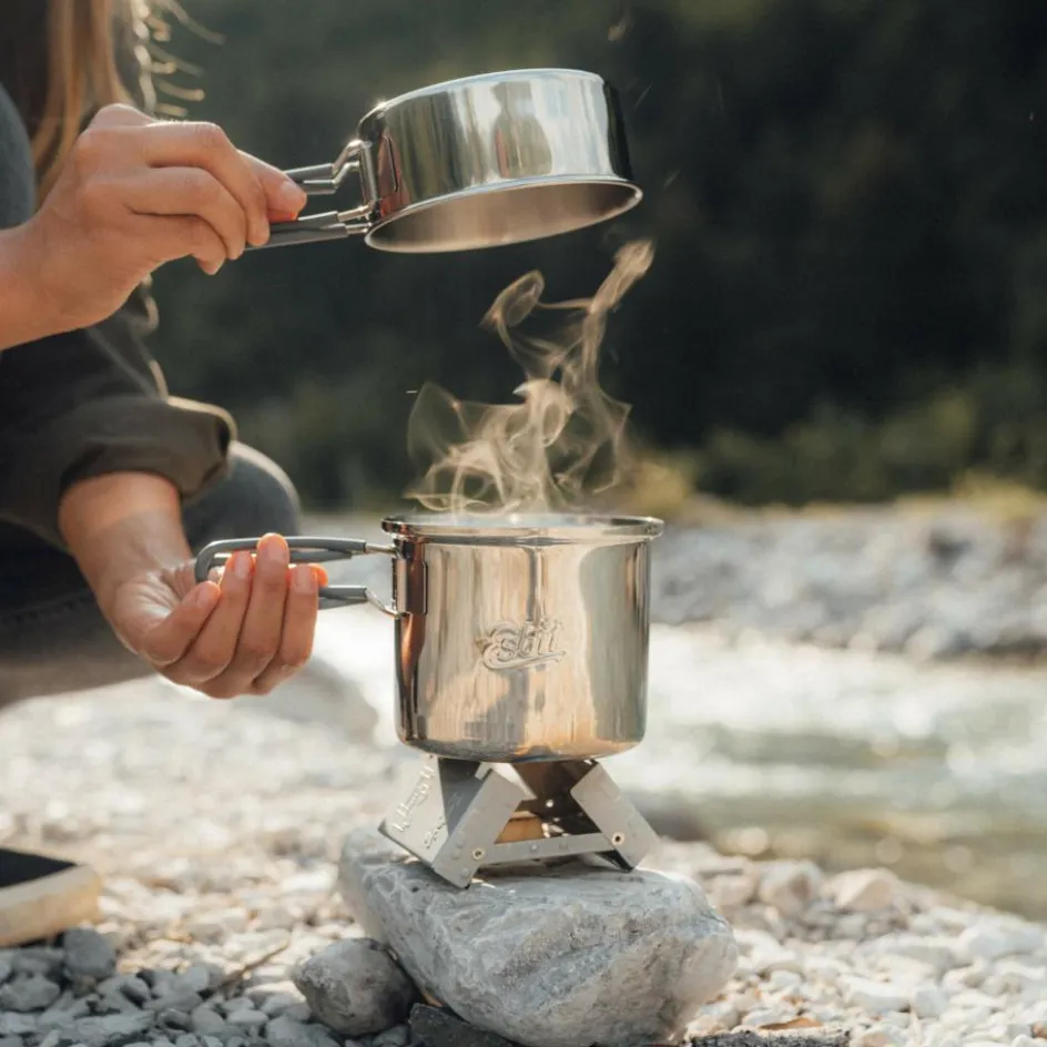 Auf den ersten Blick ein einfacher Topf mit Deckel. Doch im kleinen Set steckt viel mehr. Minimalisten können den Deckel mit max. 475 ml Volumen als Trinkgefäß nehmen, andere als Soßentopf. Im großen Topf ist Platz für ein kleines Gericht. Bis zu 750 ml Wasser kann schnell zum Kochen gebracht werden. Im Topf hat eine 230 g Gaskartusche und ein kleiner Gaskocher Platz. So ist das Kochset kompakt und griffbereit verstaut.