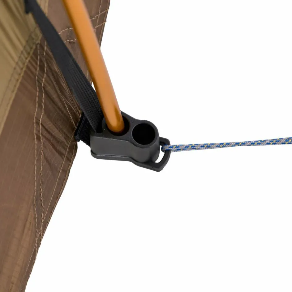 Um den Aufbau zu erleichtern, kann das Innen- und Außenzelt gleichzeitig aufgestellt werden. So bleibt das Innenzelt bei Regen trocken und die Aufbauzeit wird verkürzt. Beide Gestängebögen bestehen aus hochwertigem DAC Featherlite NSL Aluminium. Bei kritischer Witterung kannst du sie mit einem zweiten Stangensatz (als Zubehör erhältlich) ergänzen. So trotzt das Zelt auch starken Stürmen zuverlässig.