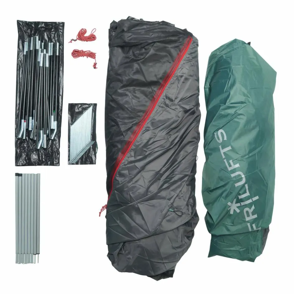 Das preiswerte Familienzelt lässt sich durch markierte Stangen und Gestängekanäle problemlos aufbauen. Trotz der Größe gelingt der Aufbau mit zwei Personen schnell. Das Innenzelt kann beim Aufbau im Außenzelt verbleiben. So wird es auch bei Regen nicht nass.
