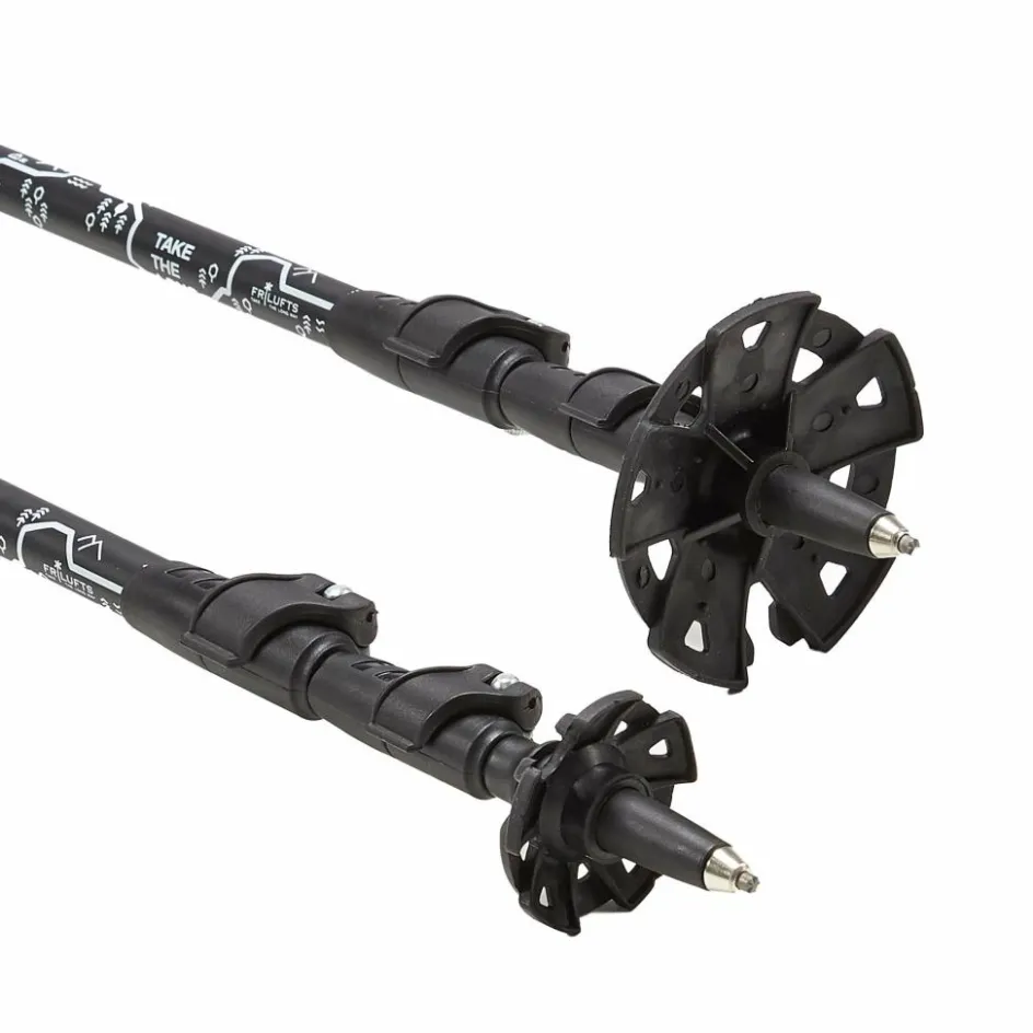 Die oberen beiden Stocksegmente bestehen aus leichtgewichtigem Carbon, das untere Segment aus robusterem Aluminium, um den Stock resistent bei Kontakt mit scharfen Kanten und Steinen zu machen.