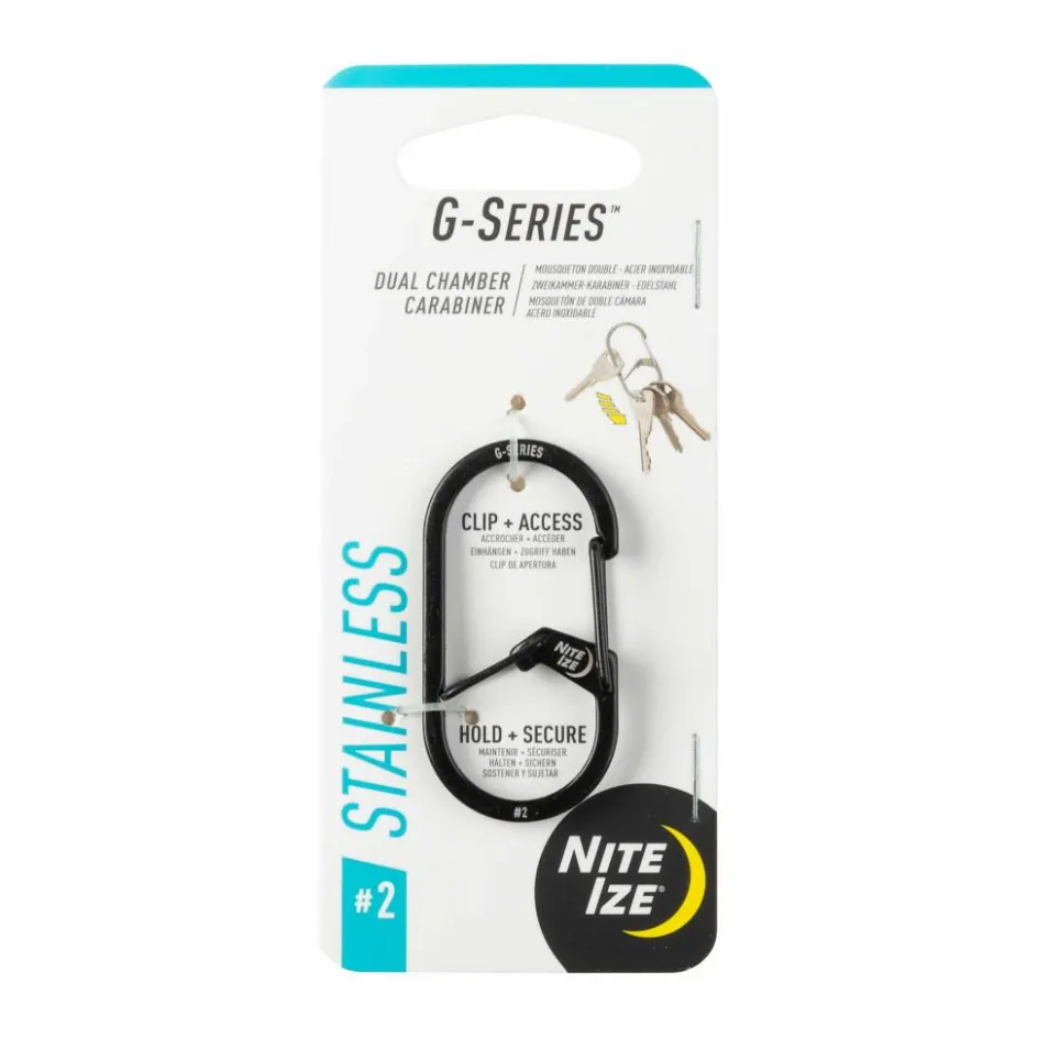 Nützlicher Karabiner zur sicheren Befestigung von Ausrüstung am Rucksack oder zur Nutzung als Schlüsselbund. Die G-Form ermöglicht dabei eine doppelte Sicherung innerhalb des Karabiners.