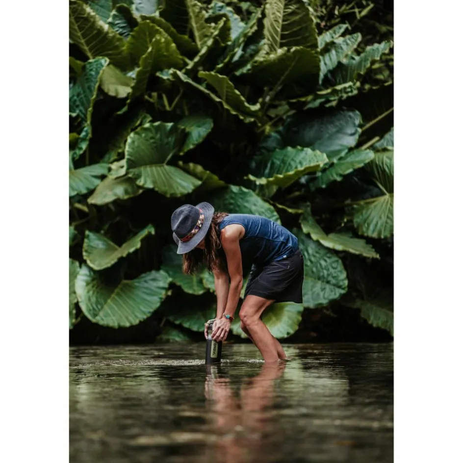 Die Geopress ist der schnellste portable Wasserfilter. Mit ihm zauberst du aus jedem Bachwasser sicheres Trinkwasser. Einfach mit dem Becher schöpfen, den Filtereinsatz einpressen und trinken.