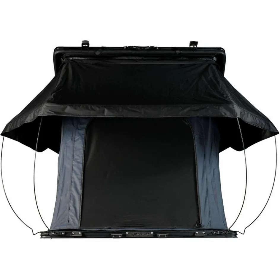 Die flache Hartschale aus Aluminium sorgt für gute Aerodynamik während der Fahrt und senkt den Luftwiderstand. Der halbautomatische öffnungsmechanismus mit Gasdruckfedern ermöglicht dir einen schnellen Aufbau in wenigen Sekunden. Innen erwartet dich eine bequeme Memory Foam Matratze mit 3D-Airmesh-Unterlage für bessere Belüftung und reduzierte Kondensbildung. Dank großer Fenster mit Insektenschutz genießt du eine gute Durchlüftung und freien Blick nach draußen. Die integrierte LED-Beleuchtung mit USB-Anschluss sorgt für angenehmes Licht im Zelt.