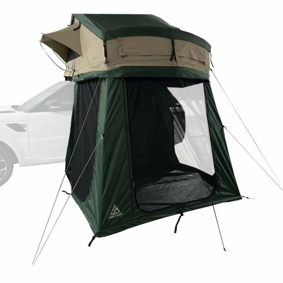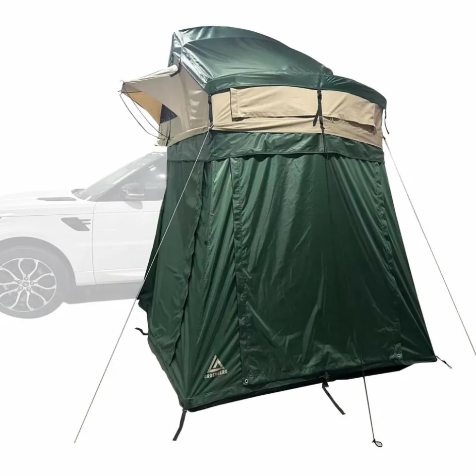 Die praktische „Add-On“ Kabine ermöglicht dir einen wind- und wettergeschützten Zugang zum Dachzelt und erweitert zugleich den zur Verfügung stehenden Wohnraum ganz erheblich.