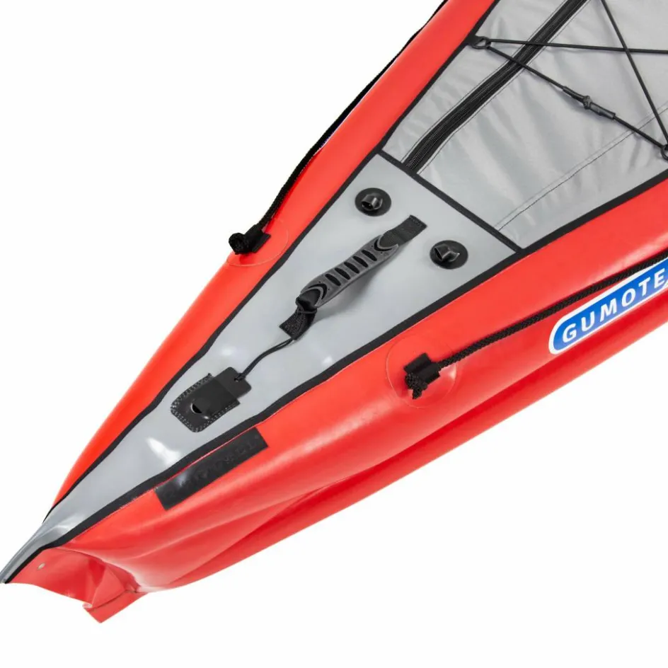 Im Bug und Heck ist viel Stauraum für Gepäck, welches durch das geschlossene Verdeck (nicht abnehmbar) sicher und geschützt verwahrt ist. Boden und Schläuche bestehen aus Gumtex’ bewährtem Nitrilon, einem äußerst beständigen und unempfindlichen Kautschuk-Material. Kräftige Verstärkungen sorgen für eine hohe Stabilität. Das Verdeck ist aus PU-beschichtetem Polyester gefertigt.