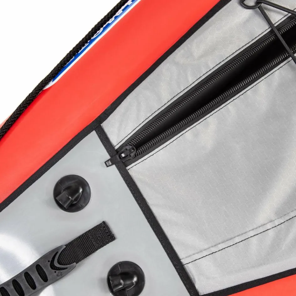 Zur Ausstattung zählen eine Richtungsflosse, Gepäcknetze auf Bug und Heck sowie eine umlaufende Sicherheitsleine.