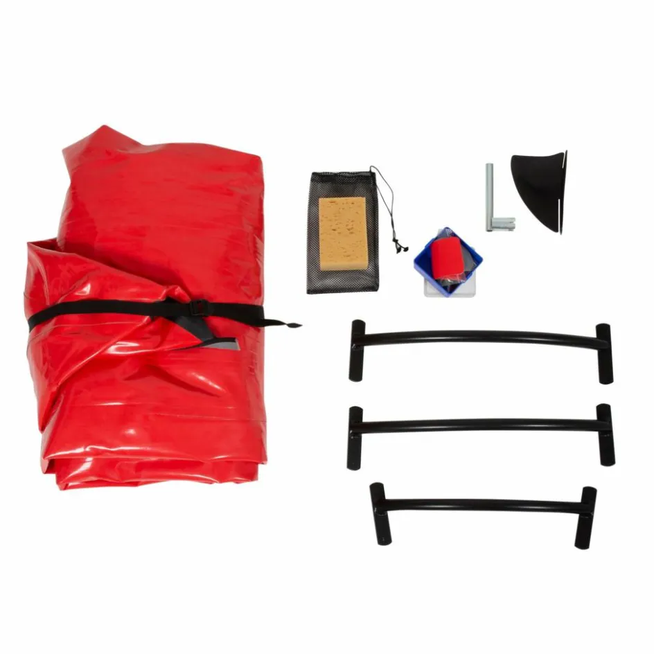 Im Lieferumfang enthalten: wasserdichter Transportsack (100 Liter), Reparaturset.