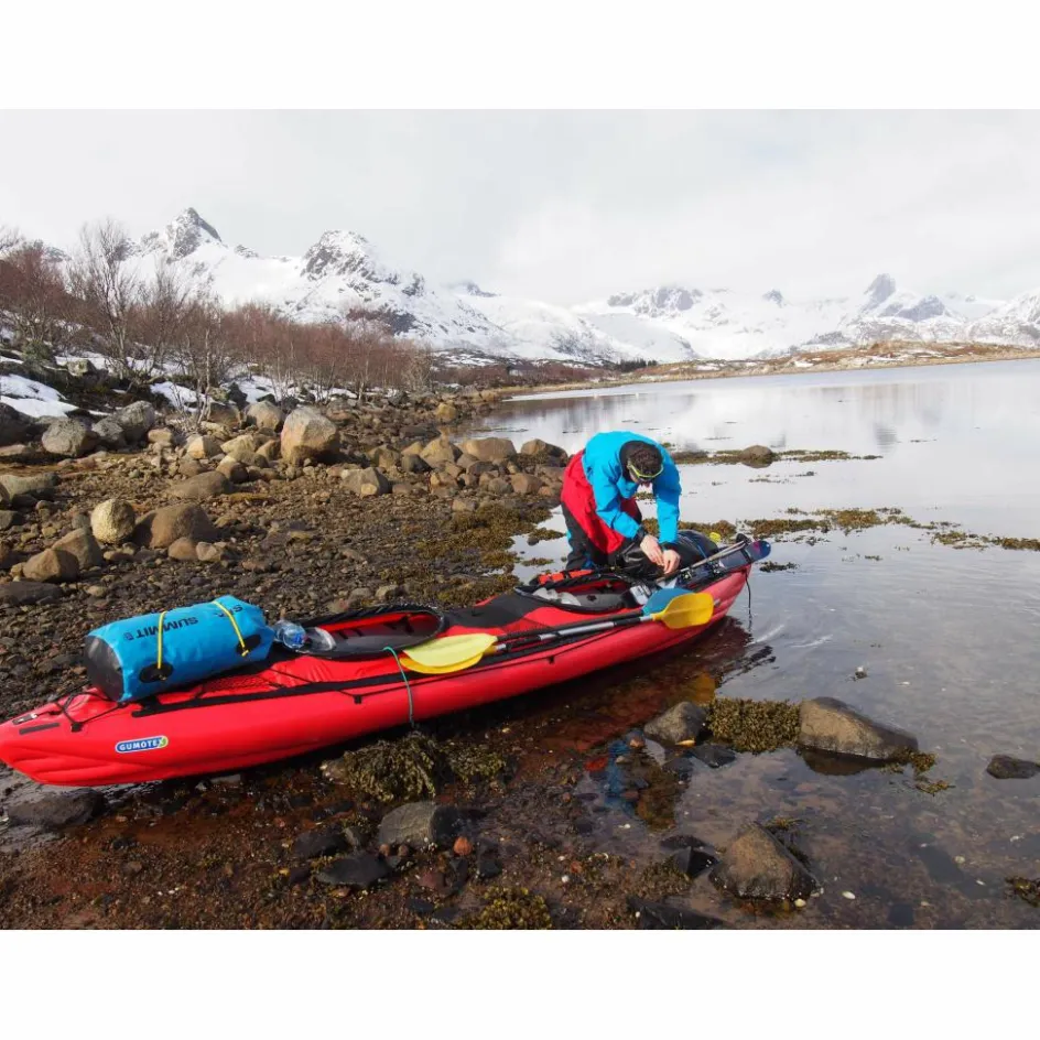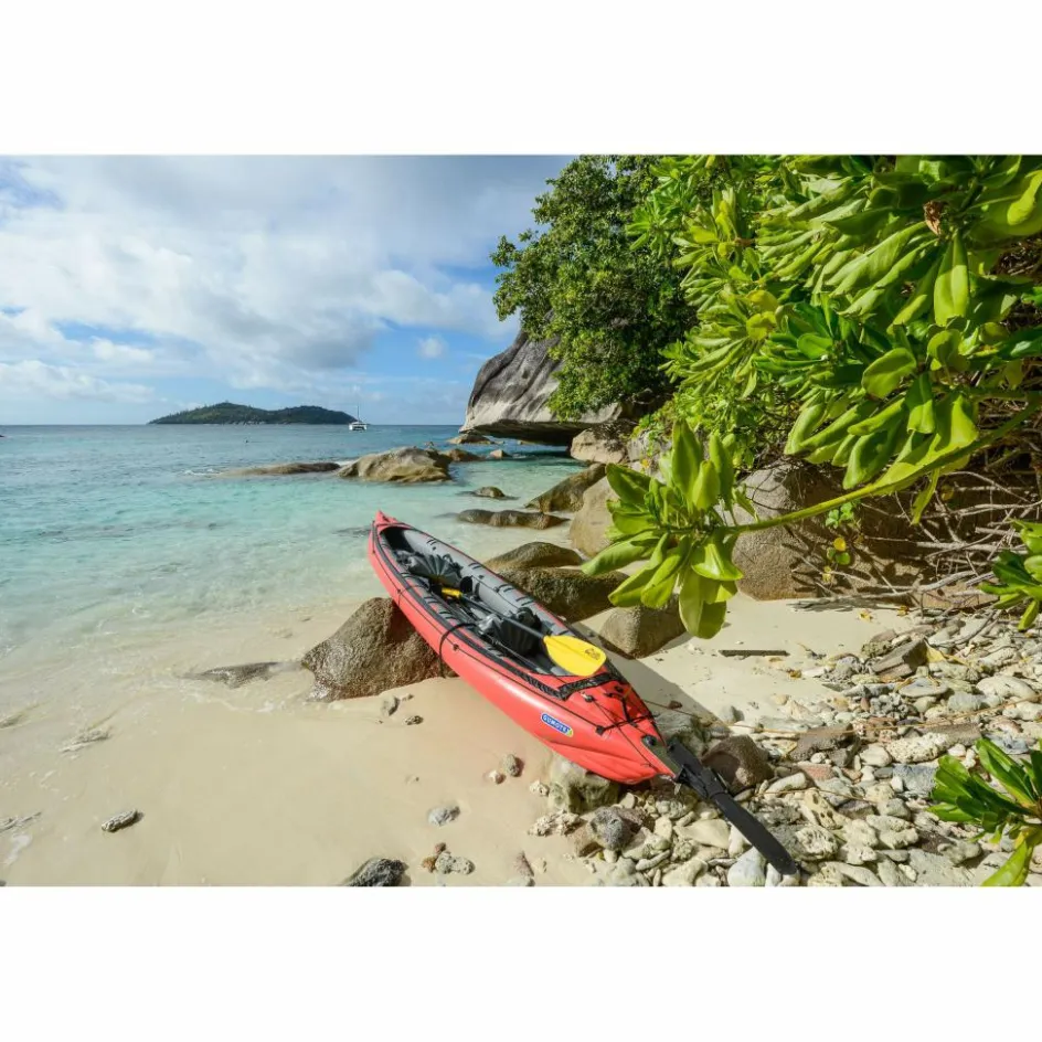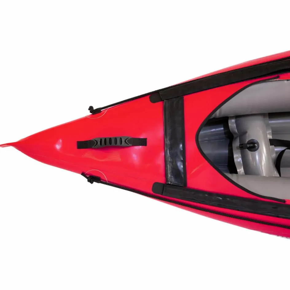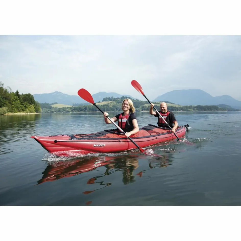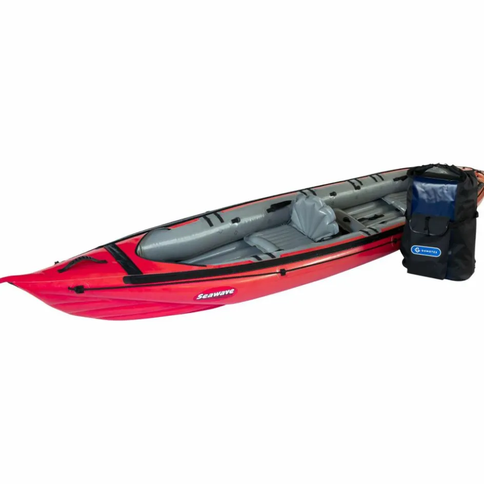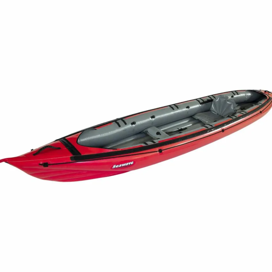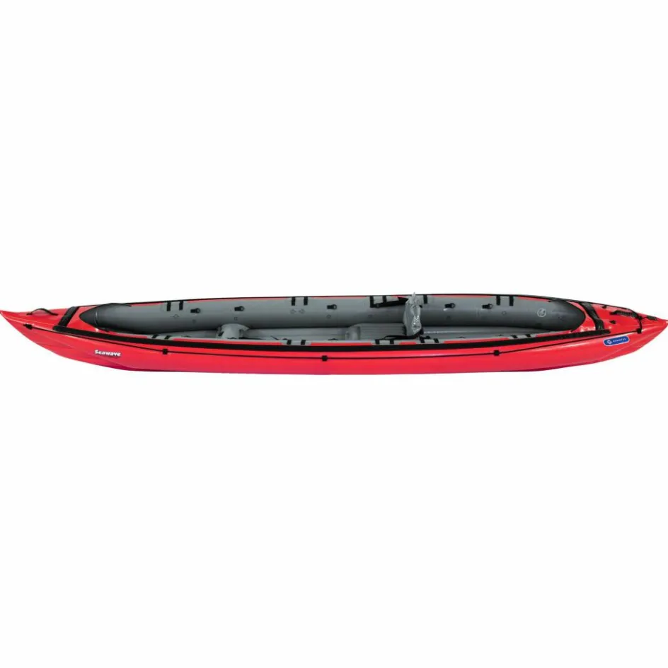 Durch seine schmale, lange Bauform, kombiniert mit einem stark konturierten Vordersteven, hat das Kajak einen sehr guten Geradeauslauf für ein Schlauchboot. Das Seawave ist mit Befestigungspunkten für eine Spritzdecke ausgestattet, die optional als Zubehör erhältlich ist.