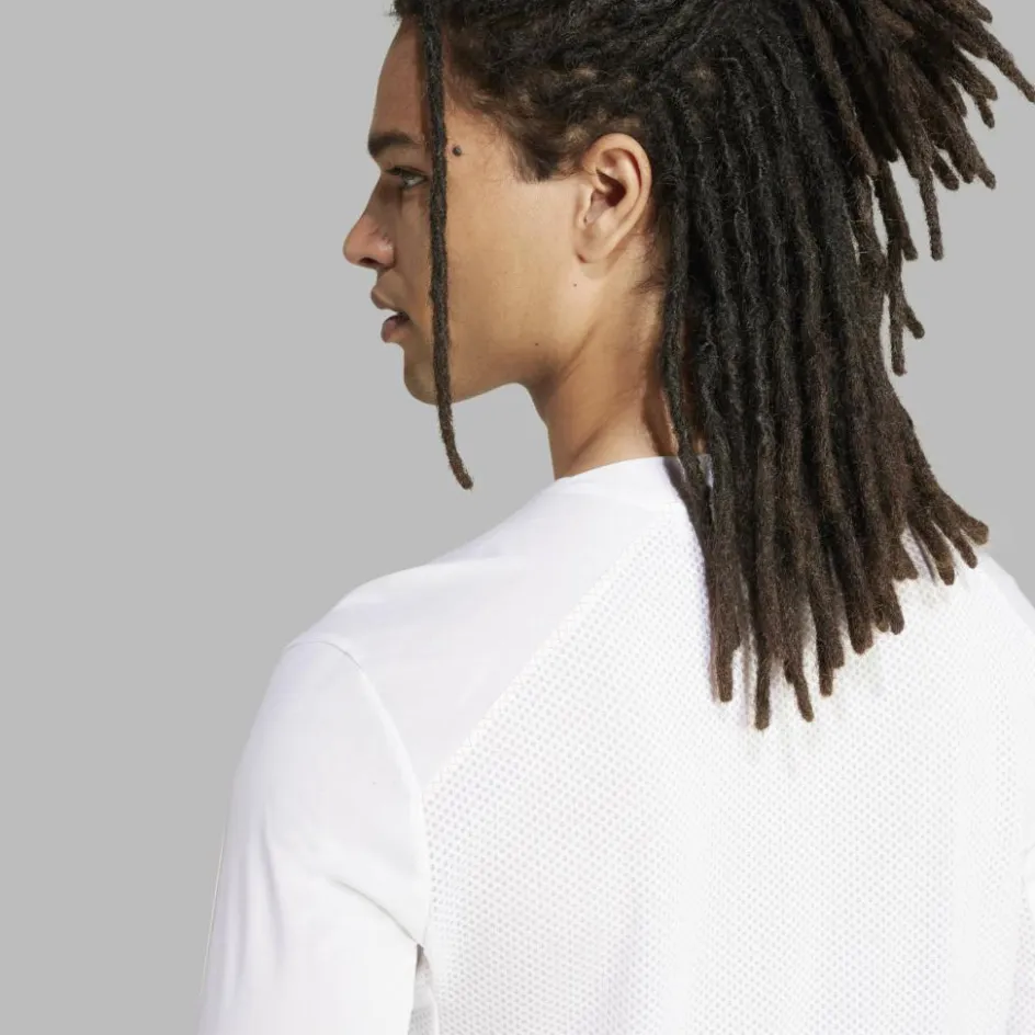 Das Funktionsshirt ist aus einem extra leichten, weichen Kunstfaser-Mix hergestellt. Das Material kann mit einem ausgezeichneten Feuchtigkeitsmanagement punkten und trocknet im Nullkommanichts. Dank dieser Eigenschaften klebt es nicht unangenehm auf der Haut, wenn du gerade dabei bist, sportliche Höchstleistungen zu vollbringen. Für eine optimale Belüftung ist das Shirt am Rücken und unter den Armen – also an den Stellen, an denen du am meisten schwitzt – mit luftigen Mesh-Einsätzen ausgestattet.