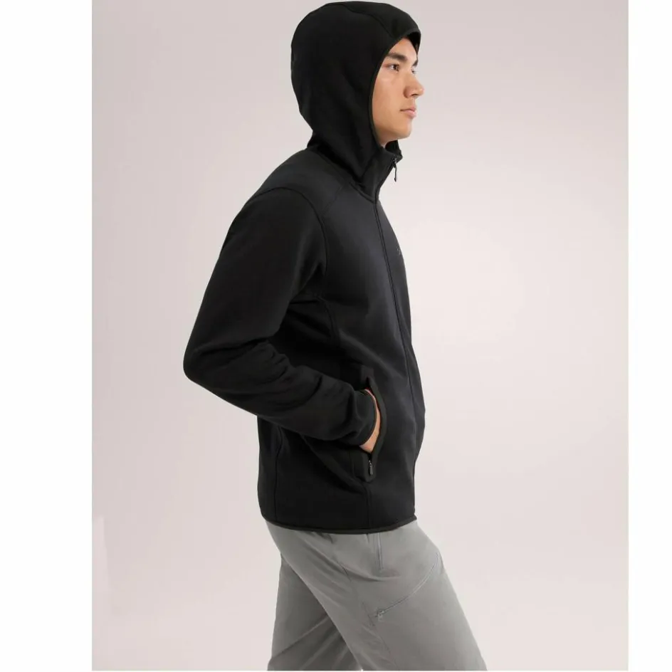 Doch das ist nicht alles, was das Power Stretch Material zu bieten hat. Es trocknet super schnell und leitet überschüssige Feuchtigkeit und Wärme von Körper nach außen ab, damit die Haut angenehm trocken und warm bleibt. Bei kühlem Wetter ist der Kyanite Hoody somit ein toller Midlayer unter einer Hard- oder Softshelljacke, überzeugt aber auch solo getragen überm Shirt mit maximaler Performance! Natürlich kommt auch die Optik nicht zu kurz. Wie von Arc’teryx gewohnt kommt der sportliche Fleecehoody in einem schicken, ästhetisch-cleanen Design daher, das zu jedem Outfit gut aussieht!