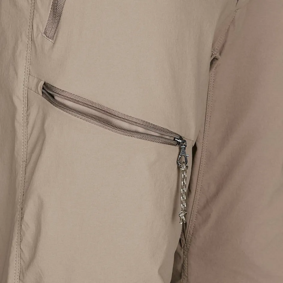 Das Material der bequemen Reisehose besteht aus zum Teil recyceltem Polyamid. Was das Gewebe nicht nur nachhaltiger, sondern auch robuster macht. Durch die Zugabe von Elasthan kommt noch eine gute Portion Dehnbarkeit hinzu, welche bei Wanderungen und Erkundungen von Nutzen ist. Das Material verfügt über ein gutes Feuchtigkeitsmanagement, dass dir in wärmeren Gefilden hilfreich zur Seite steht.
