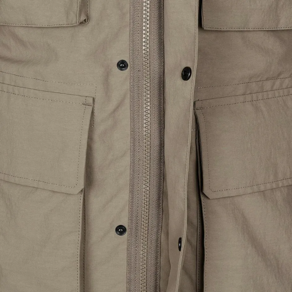 Die Jacke ist im Inneren mit einem feuchtigkeitsleitenden Meshfutter ausgestattet, welches dir bei in schweißtreibenden Situationen zu Gute kommt. Die Ärmel sind mit einem Taftfutter ausgekleidete. Zur weiteren Ausstattung der Reisejacke gesellen sich ein Stehkragen sowie ein unterlegter Reißverschluss mit Windschutzleiste. Das Highlight ist aber der großzügige Stauraum, den dir die insgesamt 10 Taschen zur Verfügung stellen. Eine von ihnen ist mit einer RFID-Sicherung versehen. Hier kannst du deinen Ausweis und deine Kreditkarten unterbringen.