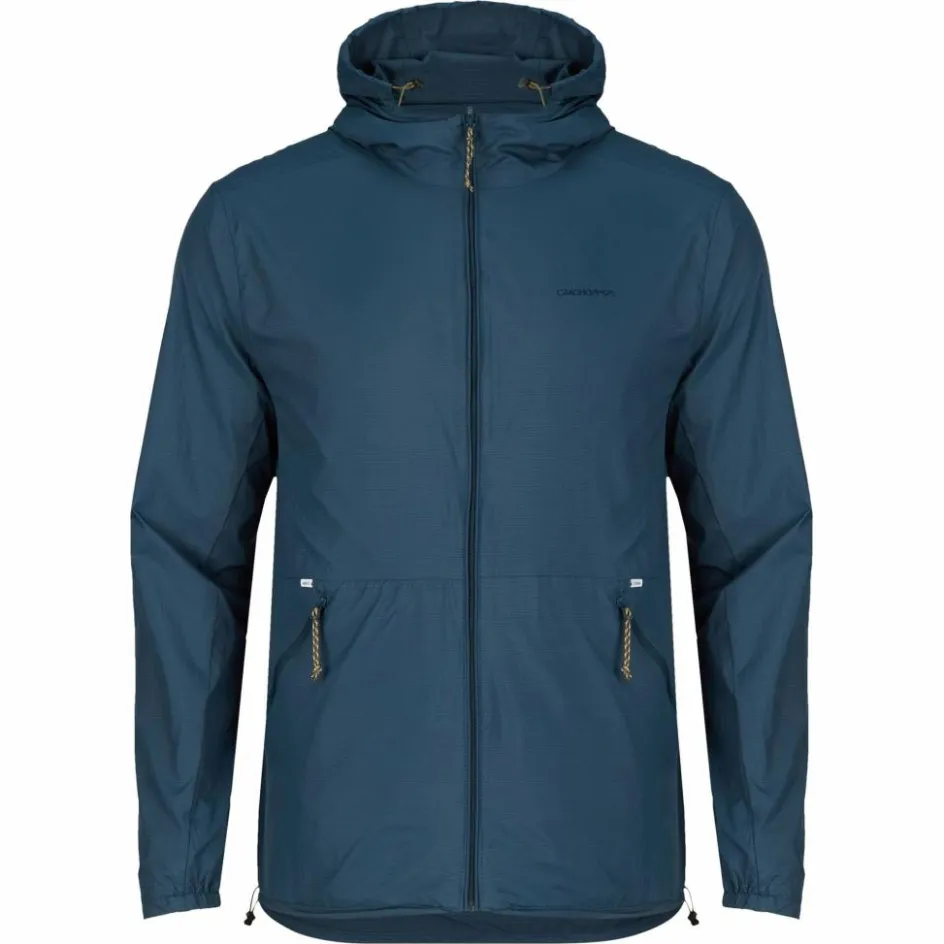 Der Windbreaker ist zudem mit einem UV-Schutz von 30+ ausgestattet. Kapuze und Saum lassen sich durch Schnürzüge deinen Bedürfnissen anpassen. Während die teilelastischen Ärmelbündchen für angenehmen Halt sorgen. Benötigst du die Jacke nicht, lässt sie sich in einer der Taschen verstauen und macht sich in deinem Rucksack ganz klein.
