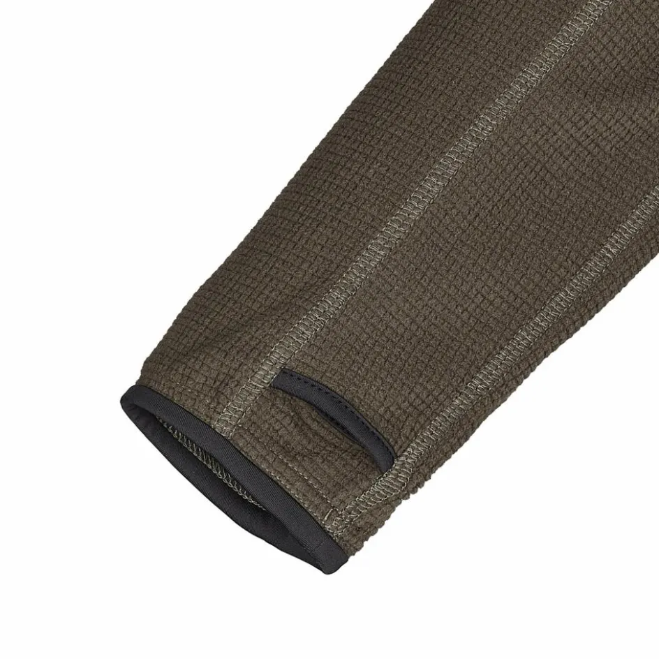 Die Fleecejacke trumpft mit recyceltem Polyester und einer Waffelstruktur auf. Somit ist sie nicht nur robust, sondern verfügt auch über ein gutes Feuchtigkeitsmanagement. Entstehender Schweiß wird flott weitergeleitet und das schnelltrocknende Material sorgt für ein komfortables Tragegefühl.