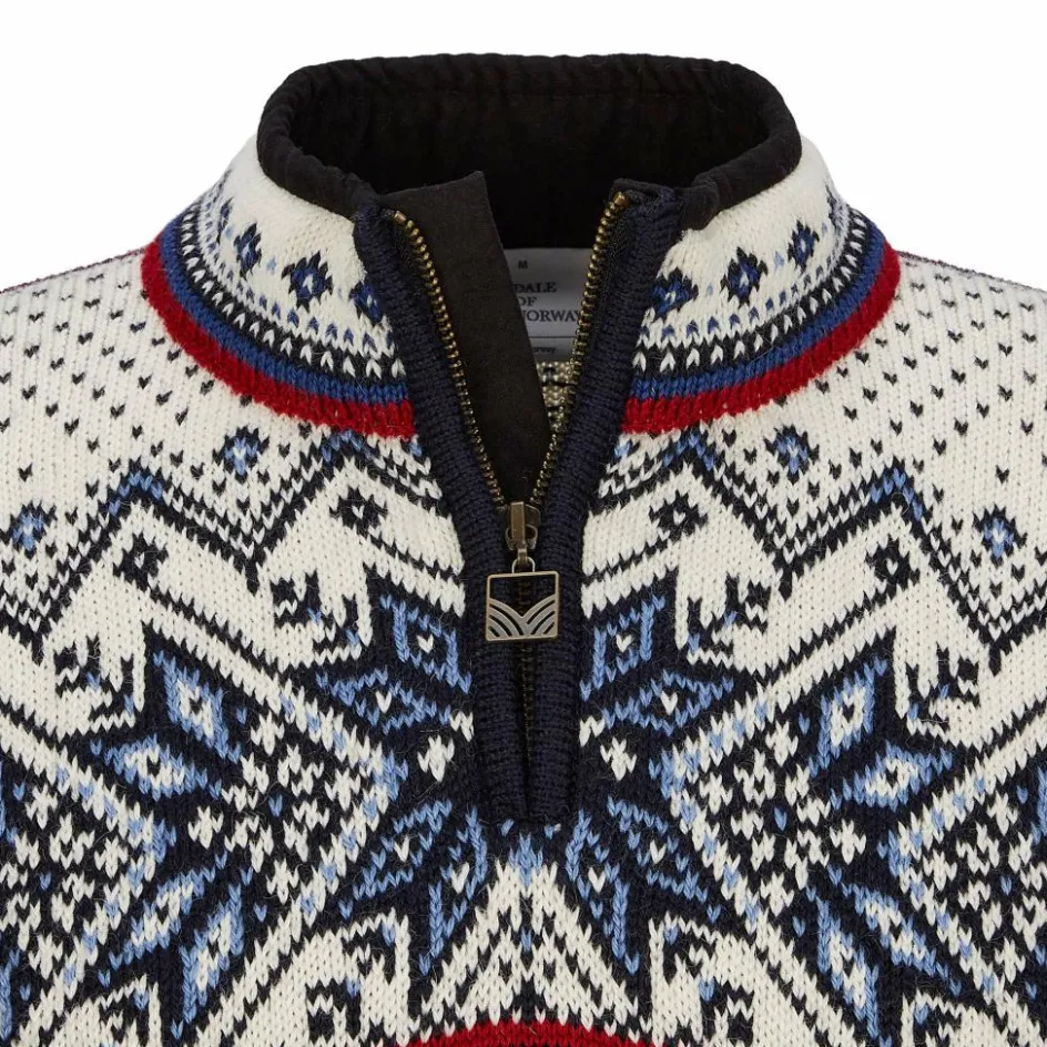 Der Pullover besteht aus reiner Wolle, die dich angenehm warm hält, ohne dass du überhitzt. Zudem nimmt die Naturfaser unangenehme Gerüche nur sehr langsam an. Ein Plus bei moderat dynamischen Einsätzen. Durch den Front-RV wird das Anziehen erleichtert und du kannst du bei Bedarf für etwas Abkühlung sorgen. Am Kragen bietet dir weiches Fleece ein sehr angenehmes Tragegefühl. Und zum Hingucker wird der Wollpullover durch das stilvolle Norweger-Muster.