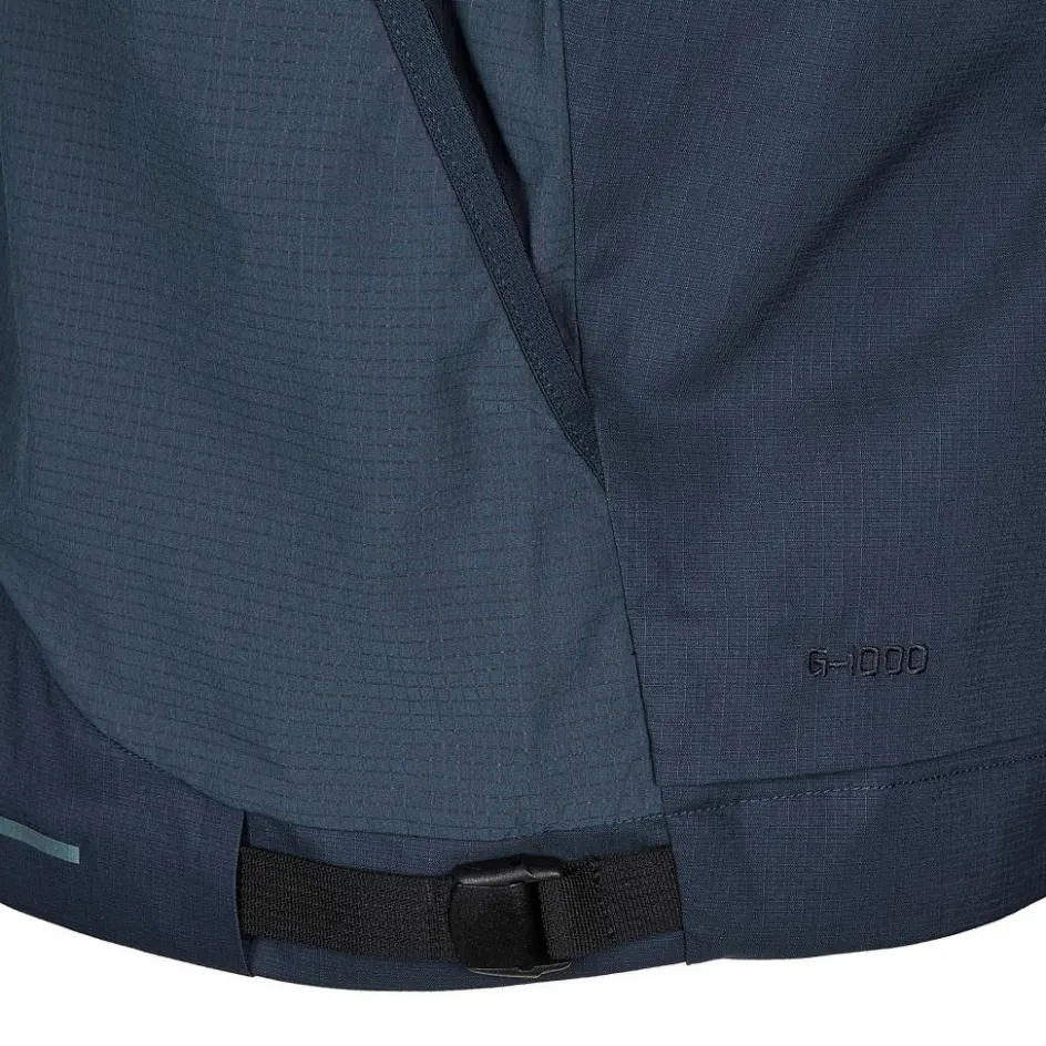 Für den Schutz vor auskühlendem Wind ist vorn das Fjällräven-eigene G-1000 Air Stretch Eco in Kombination mit einem Futterstoff verarbeitet. Willst du das G-1000-Material zusätzlich dichter bekommen, lässt es sich auch mit Greenland Wax bearbeiten. Die Westenrückseite ist aus einem Stretchmaterial mit Elasthan-Anteil gearbeitet. Insgesamt hat die S/F Gear Vest M einen hohen Recyclinganteil.