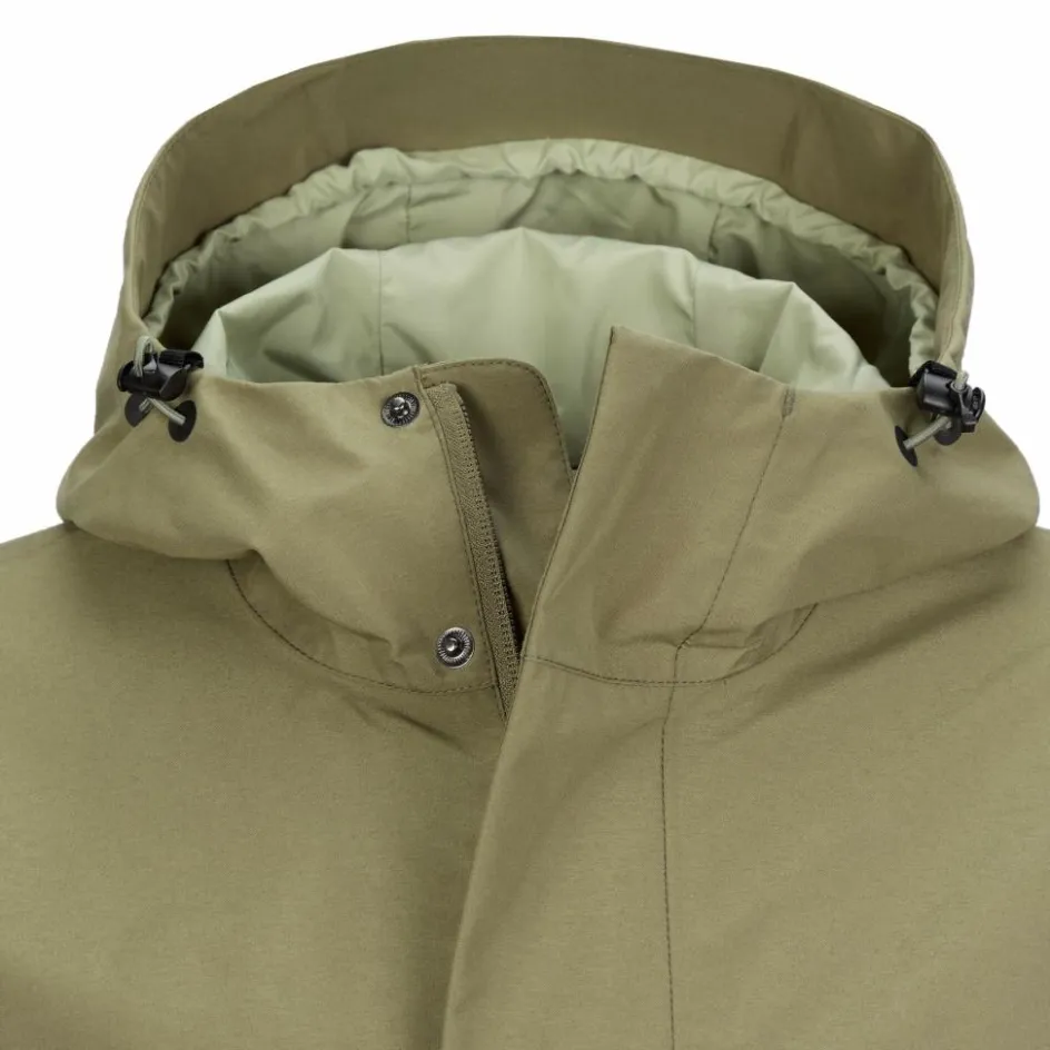 Der 2-lagige wasserdichte Sakata Parka verspricht dir stilvollen Tragekomfort und Wetterschutz. Mit einer Wassersäule von 10.000mm lässt die Jacke Nässe keine Chance. Das Außenmaterial ist zusätzlich mit einer PFC-freien DWR-Imprägnierung versehen. Diese ist sehr effizient und behält auch nach circa zehn Wäschen eine Wirkung von 80 Prozent. Wird das Wetter so richtig schmuddelig, schützen dich der hohe Kragen sowie die per Schnürzug regulierbare Kapuze zusätzlich. Plus: Ein Großteil des Außenmaterials (60 %) sowie das Futter bestehen aus recyceltem Polyester. Ein Gewinn für die Umwelt!