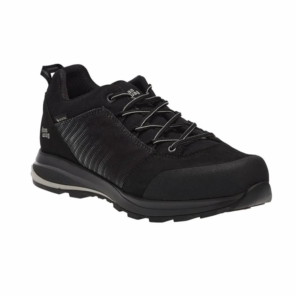Der Wanderschuh besteht aus einem Mix aus synthetischen Materialien und samtigem Veloursleder. Dadurch kann er mit einem tollen Kompromiss aus geringem Gewicht und trotzdem hoher Haltbarkeit aufwarten. Ideal, wenn du einen Schuh für wechselhaftes Gelände, aber auch wechselhaftes Wetter suchst. Denn dank zum Einsatz kommender Gore-Tex Membran brauchst du dir auch über nasse Füße, selbst bei starkem Regen, keine Gedanken zu machen.