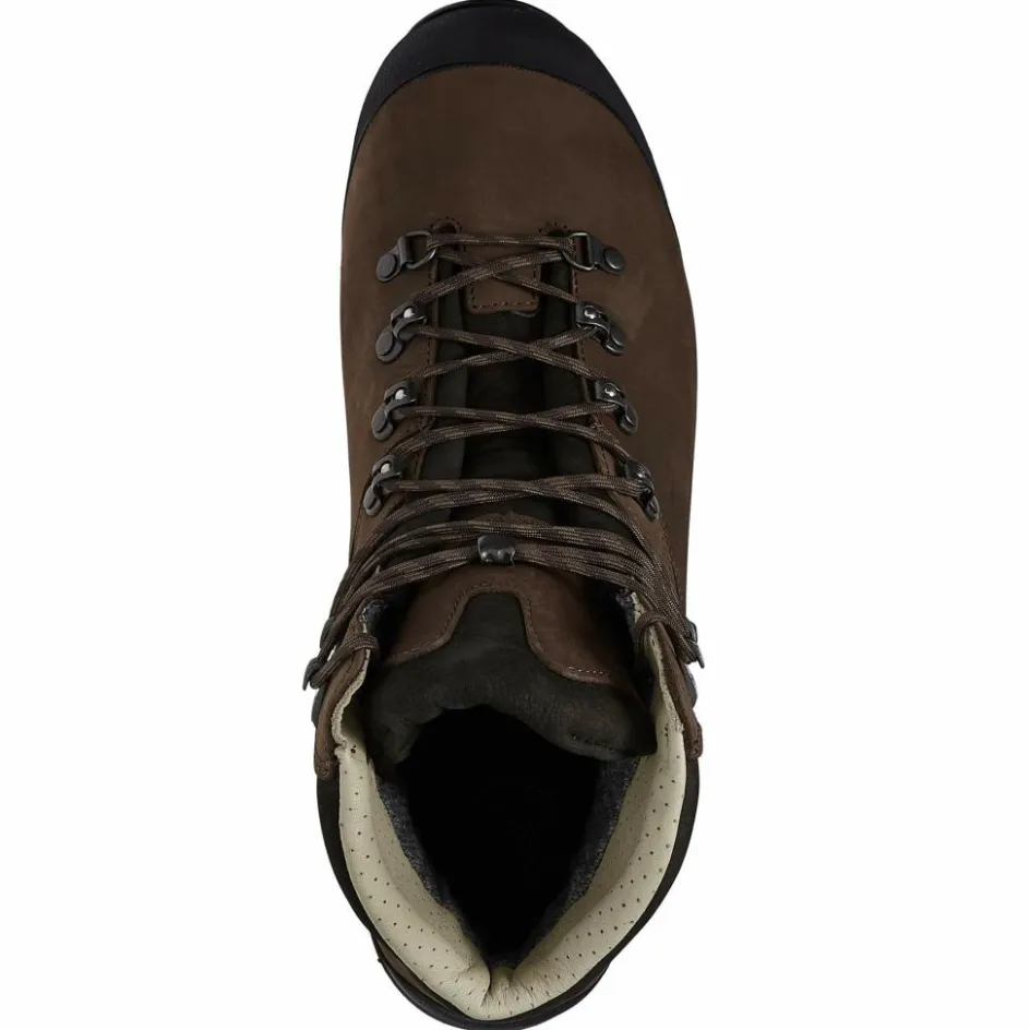 Eine Zwischensohle und ein Shock-Absorber im Fersenbereich dämpfen den Auftritt. Die feste Vibram-Laufsohle hat ein kräftiges Profil mit Brems- und Auftrittstollen. Diese mindern die Gefahr des Wegrutschens beim Auf- und Abstieg.