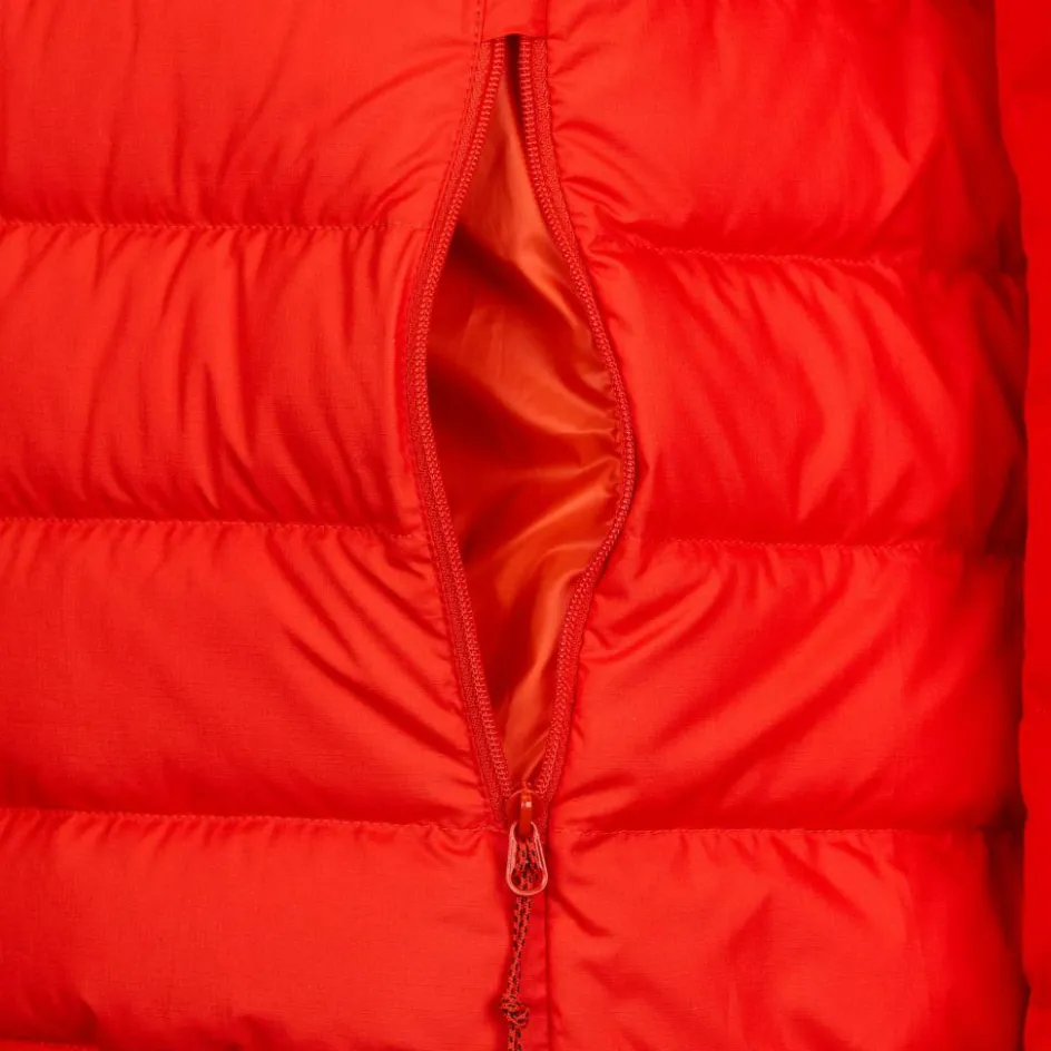 Die Einschubtaschen sind mit einem Fleecefutter ausgestattet, das sich weich an deine Hände schmiegt, wenn du sie aufwärmen möchtest. Der Front-Reißverschluss ist unterlegt, sodass auch dieser Bereich gut vor eindringendem Wind und Kälte geschützt ist. Die gut sitzende, vorgeformte Kapuze mit Elastik-Einfassung schirmt Kopf und Ohren vor winterliche Kälte ab.