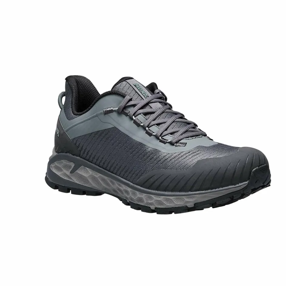 Eine schützende Gummikappe im Zehenbereich und die stabilisierende Fersenkappe erhöhen die Langlebigkeit des Schuhs und Sicherheit auf unebenen Wegen. Mit dem Duo-Lacing-Schnürsystem sitzt der Schuh präzise am Fuß ohne Druckstellen zu erzeugen.