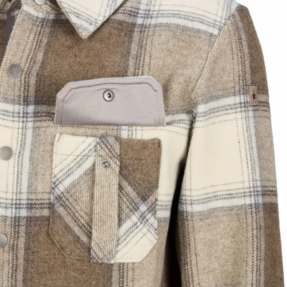 Für die hohe Wärmeleistung des Hemds ist das weich aufgebürstete, recycelte Fleecematerial auf der Innenseite verantwortlich. Das Außenmaterial besteht aus einem hochwertigen Gemisch aus Merinowolle und Nylon. Die Merinowolle wirkt feuchtigkeitsleitend und temperaturausgleichend. Außerdem hemmt die Wolle auf natürliche Weise die Bildung unangenehmer Gerüche. Der Nylon-Anteil macht das Hemd strapazierfähiger und beschleunigt die Trocknungsdauer.
