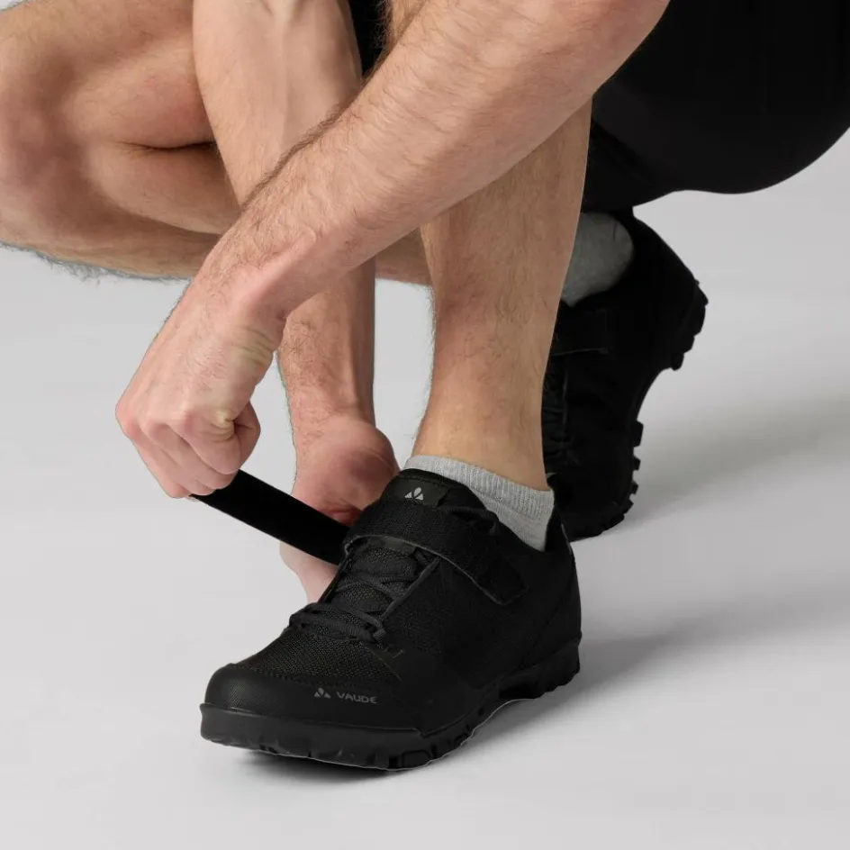 Die Innensohle des Schuhs hat eine Verstärkung in der Pedalzone. Die mittelfeste Außensohle kommt mit einer durchgängigen Nylonverstärkung, die dir hilft, deine Kraft verlustfrei aufs Pedal zu bekommen. Eine profilierte Außensohle zeigt sich bei losem Untergrund griffig. Ideal, wenn du dein Bike mal schiebend bewegen musst.