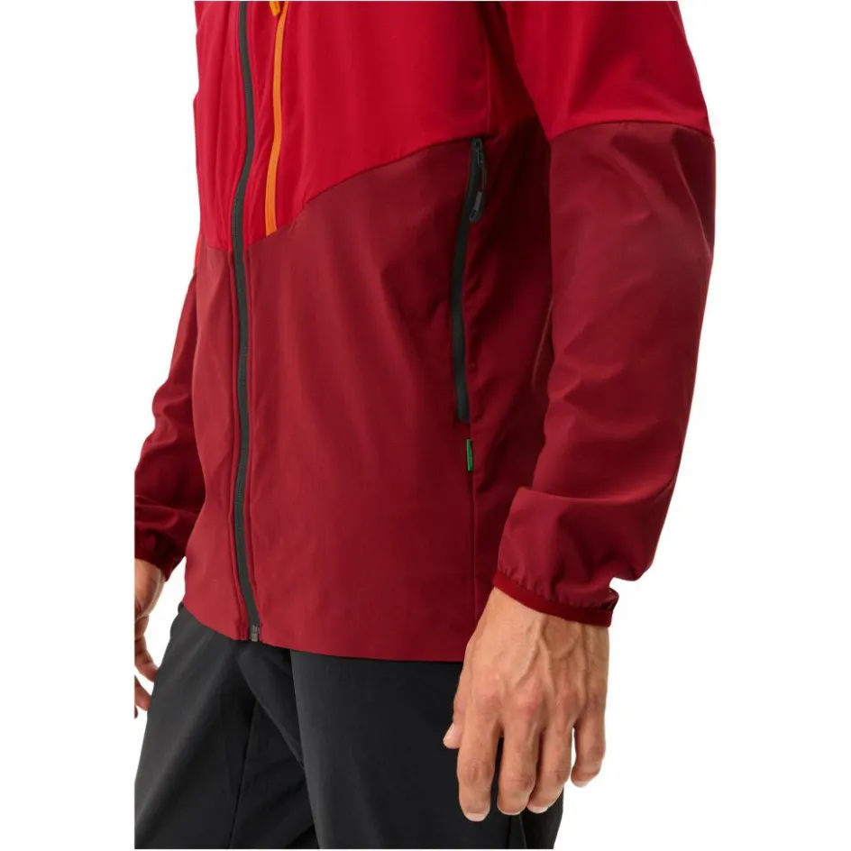 Das verwendete Polyamid wurde aus Öl gewonnen, das unter Anwendung eines Massenbilanzverfahrens aus Altreifen hergestellt wurde. Die wasserabweisende Imprägnierung ist PFC-frei. Die Jacke gehört zu Vaudes Green Shape-Serie, die für umweltfreundliche Produkte aus nachhaltigen Materialien steht.