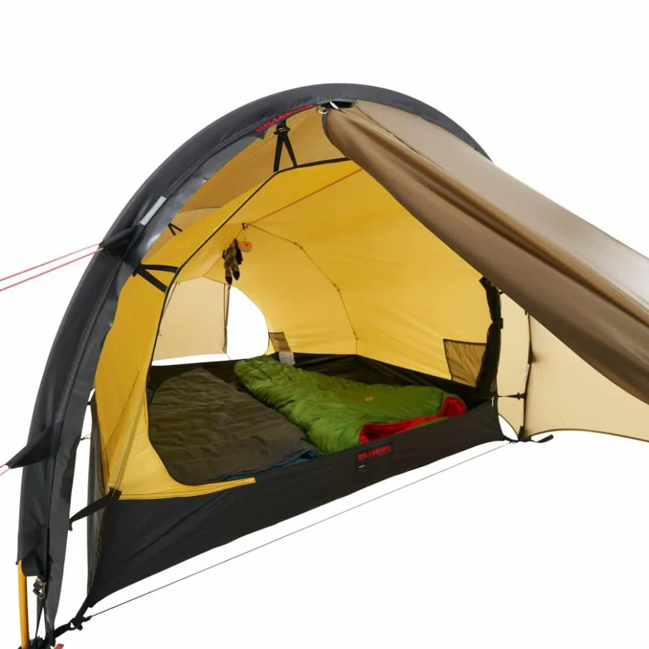 Das Helags ist äußerst hochwertig verarbeitet. Dreifach silikonisiertes Außenmaterial (Kerlon 1000) mit 8 kg Reißfestigkeit, eine hohe Wassersäule im Bodenbereich und reißfeste Abspannleinen garantieren eine jahrelange Nutzung. Und damit du im Sommer nicht von Gnitzen oder Midges im Zelt attackiert wirst, ist das Innenzelt mit einem besonders engmaschigen Moskitonetz versehen.
