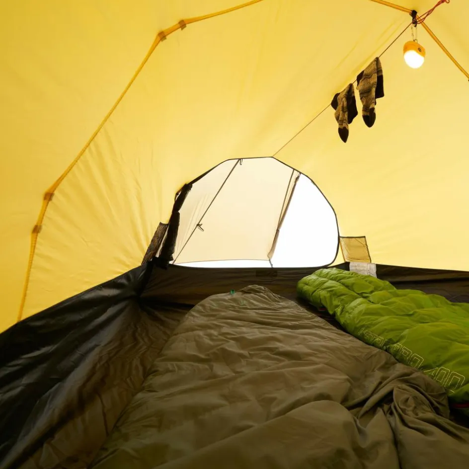 Sehr robustes und gewichtsoptimiertes Tunnelzelt für zwei Personen mit viel Gepäck. In den beiden Apsiden hast du genügend Platz zum separaten Organisieren und Verstauen der Ausrüstung.