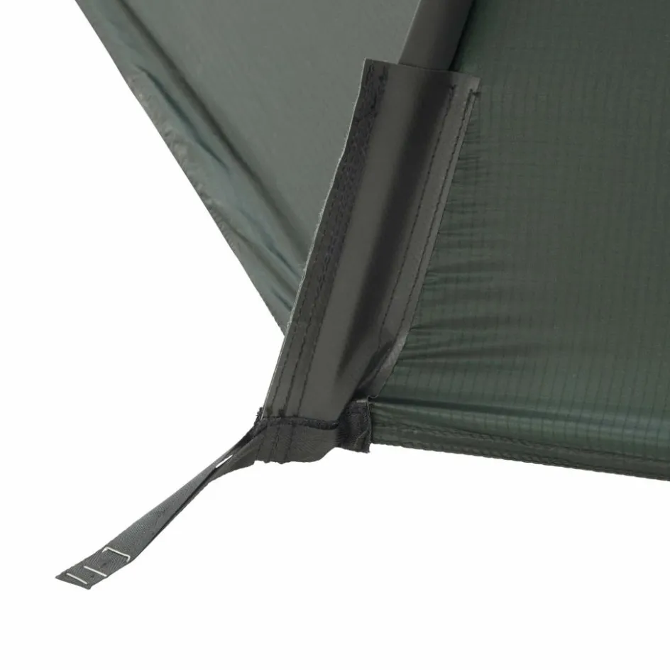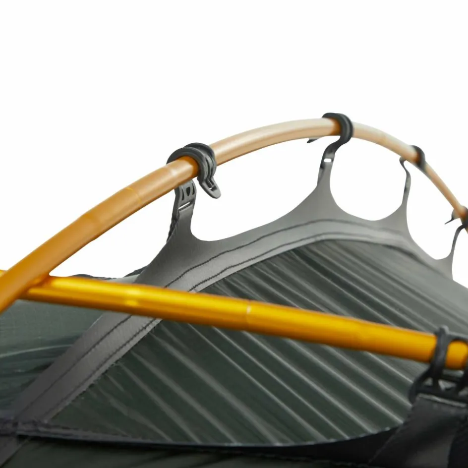 Alle drei Gestängebögen werden mit Clips am Außenzelt befestigt, was die Aufbaugeschwindigkeit erheblich erhöht. Die Featherlite-Gestänge sind gleich lang und kreuzen sich in der Kuppel, wodurch du keine Zeit mit der Suche nach der richtigen Stange verlierst. Das Innenzelt kann eingehängt bleiben und wird dadurch gleichzeitig mit dem Außenzelt aufgestellt. Bei Regen steht dir somit immer ein trockener Innenraum zur Verfügung.