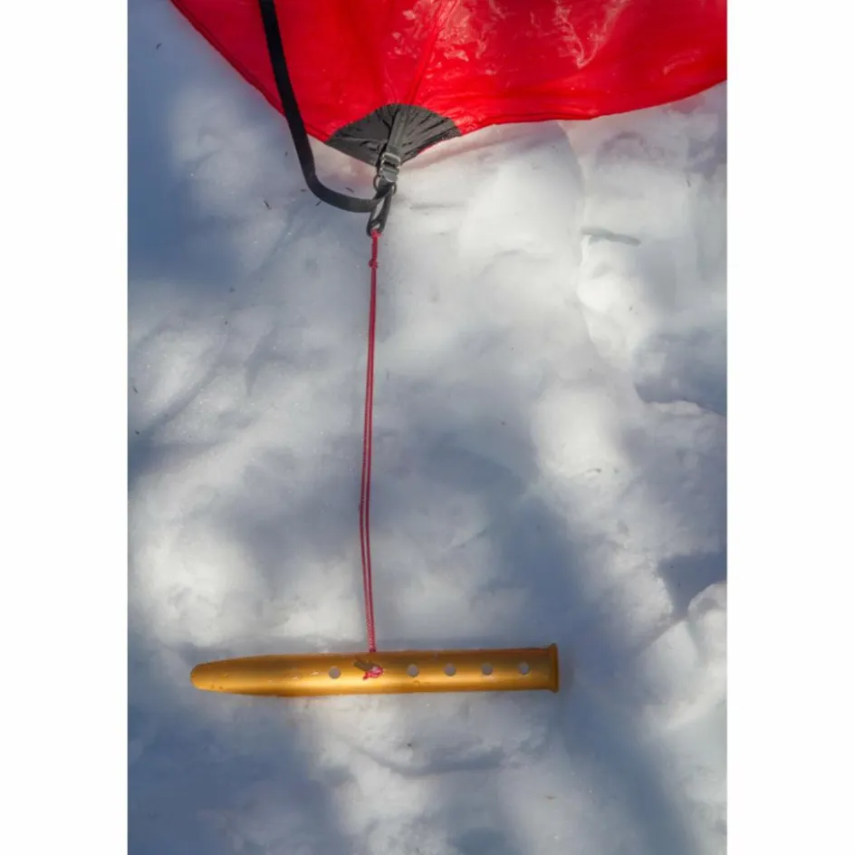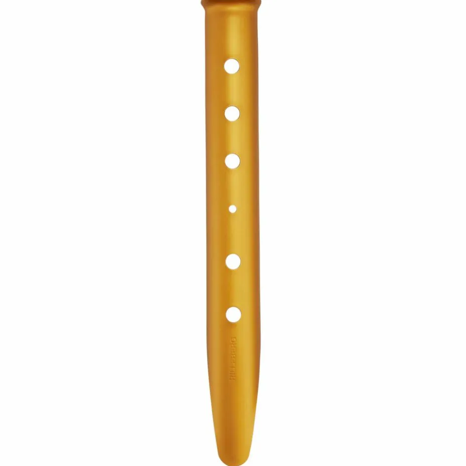 Trotzdem ist er äußerst leicht. Mit dem integrierten Aluminiumkarabiner und der Leine hast du die Möglichkeit, den Hering entweder quer zum Zelt in Schnee oder Sand einzugraben oder wie einen normalen Hering senkrecht einzusetzen. Durch die eloxierte goldfarbene Oberfläche ist der Hering gut sichtbar.