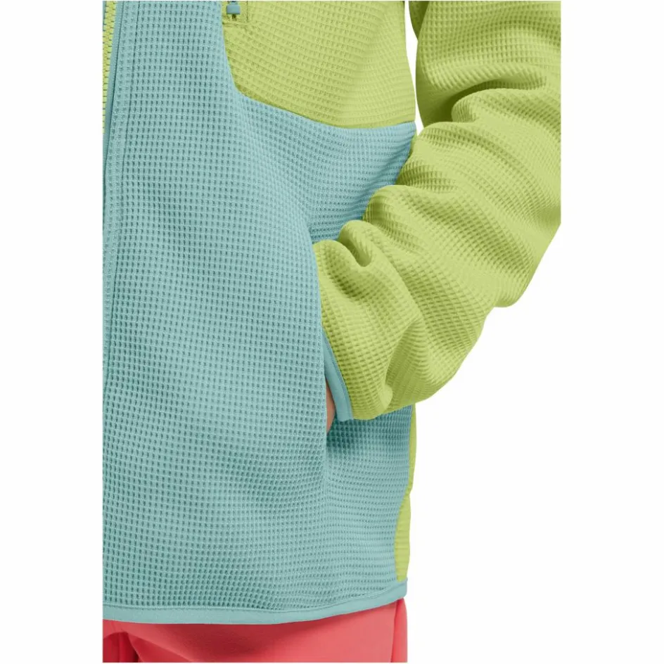 Die Fleecejacke ist durch ihre flinke Feuchtigkeitsleitung und das schnelltrocknende Material ideal für deine aktiven Sprösslinge bei Sportveranstaltungen oder Outdoor-Einsätzen. Gemeinsam schaffen das atmungsaktive Gewebe und die Waffelstruktur ein angenehmes Trageklima, wenn es körperlich zur Sache geht.