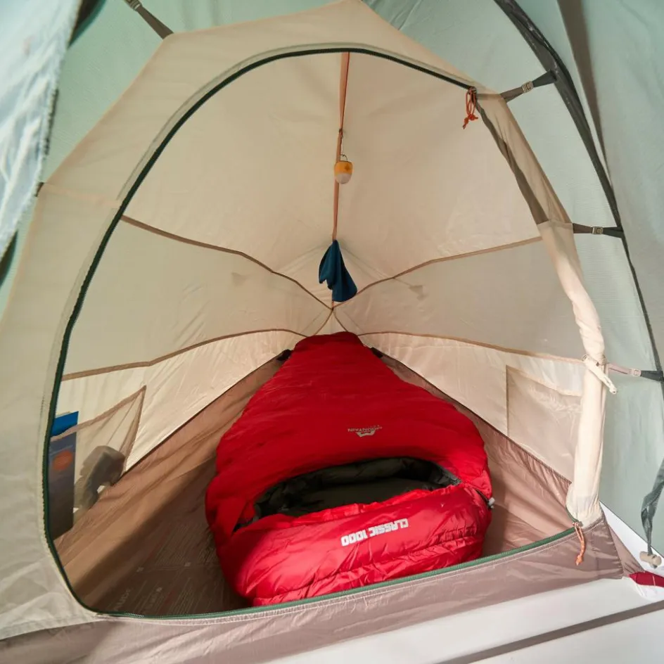 Dieses leichte und wetterfeste 1-Personen-Zelt ist ideal für Trekking- und Bikepacking-Touren konzipiert. Es ist selbststehend und verfügt über einen kombinierten Aufbau (Doublepitching), der schnelles und unkompliziertes Aufstellen ermöglicht. Das Material des Außenzeltes und des Bodens besteht komplett aus recycelten PET-Flaschen.Mit einem Eingang und einer geräumigen Apsis bietet das Zelt komfortablen Stauraum für Ausrüstung. Der regensichere Aufbau wird durch das eingehängte Innenzelt garantiert, während Flachkanäle für zusätzliche Stabilität bei Wind sorgen. Die Innenzeltwände aus Mesh schaffen ein angenehmes Raumklima und halten Mücken draußen. Die Innentür verfügt ebenfalls über moskitosichere Belüftungseinsätze, was eine dauerhafte Frischluftzufuhr sicherstellt.Im Lieferumfang sind Heringe und Abspannleinen enthalten, die dank der integrierten Aufwicklung und Klemme bequem und einfach zu handhaben sind.